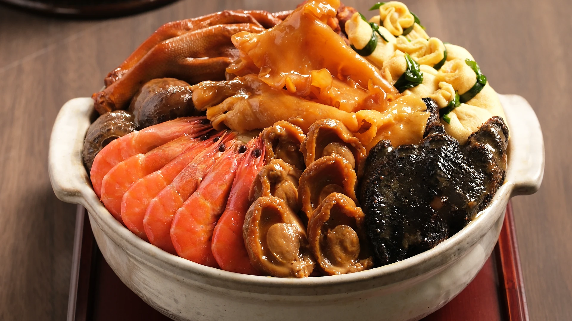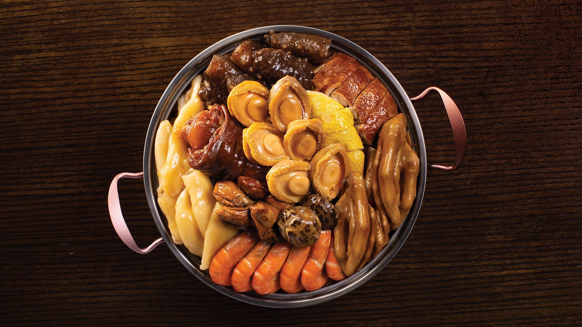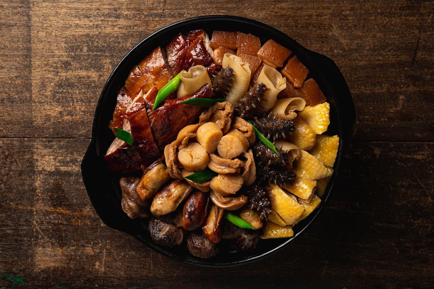 • Supreme Abalone, Sea Cucumber & Fish Maw Poon Choi ($1,850 / 8–10 pax)
